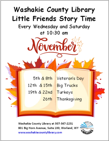WASHAKIE COUNTY LIBRARY HOURS      MON - FRI   9:00 am - 6:00 pm        SATURDAY   9:00 am - 1:00 pm         SUNDAY CLOSED